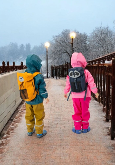 Placées dans le compartiment principal, ses affaires seront à l’abri des intempéries grâce au col de protection resserable et au rabat. Par souci de visibilité et de sécurité, les têtes d’animaux et les passepoils au niveau des épaules sont réfléchissants.