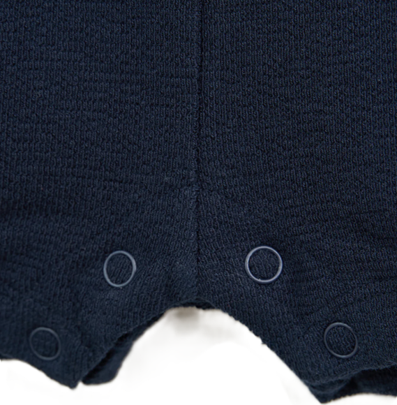Petite salopette bébés confectionnée dans un tissu texturé 100% coton qui présente un motif en léger relief, lequel donne une finition unique au vêtement. Elle possède 4 boutons décoratifs imitation bois sur la poitrine et un de chaque côté afin qu’il soit plus facile de mettre et d’enlever le vêtement du bébé. De plus, elle est dotée de boutons – pressions à l’entrejambe et de deux autres dans le dos ce qui facilite grandement l’habillage de bébé.